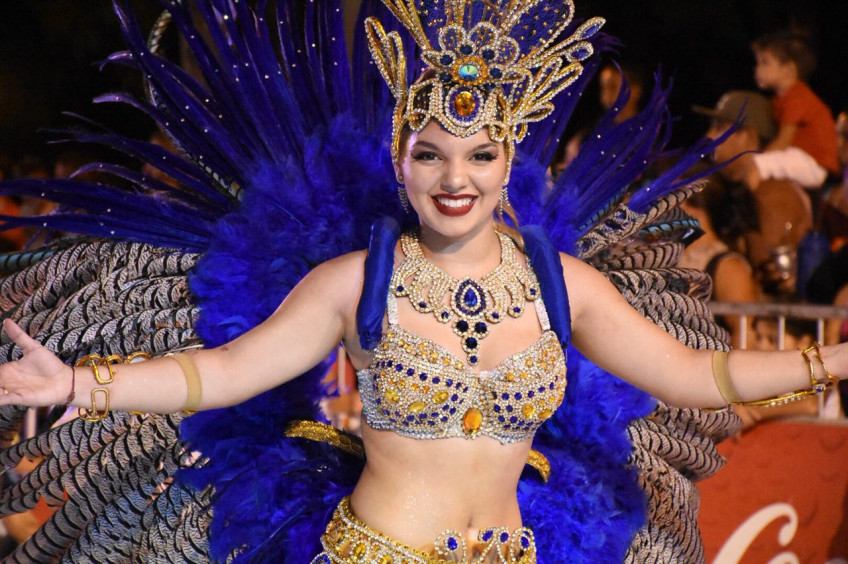 Otra de las bellezas presentes en la noche de clausura de los Corsos Barriales fue Dayana Reichembach, quien desfiló por la Costanera Sur como reina de la popular Escola do Samba, integrada por los barrenderos municipales que trabajan en la fiesta.
