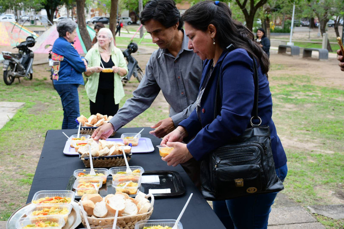 La celebración también se vivió en el Centro Cultural Adolfo Mors, donde los vecinos compartieron un almuerzo comunitario con platos típicos, además de música y danza.