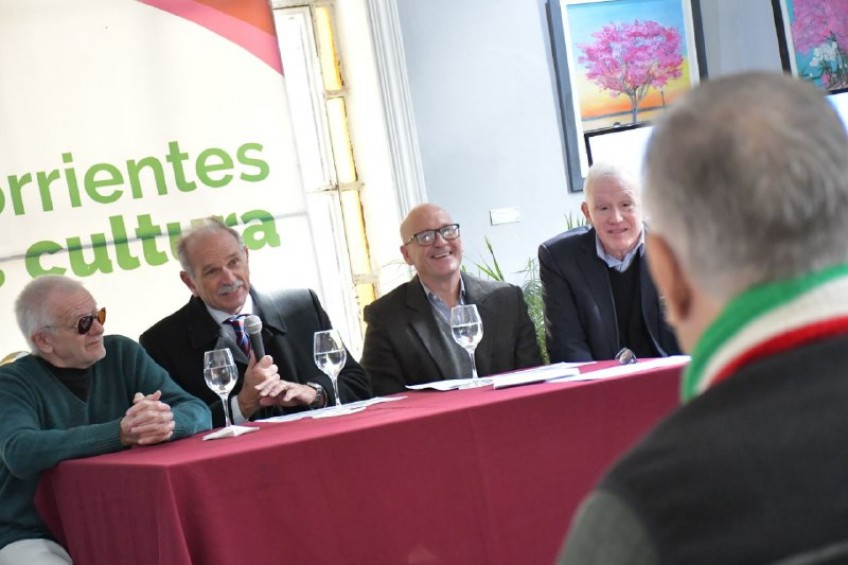 NOTA DE TV: Emilio Lanari, viceintendente; José Sand, secretario de Cultura y Educación del Municipio; Eduardo Sívori, representante del Instituto de Cultura de la Provincia y Giancarlo Perversi, presidente de la Società Dante Alighieri Comitato di Corrientes.