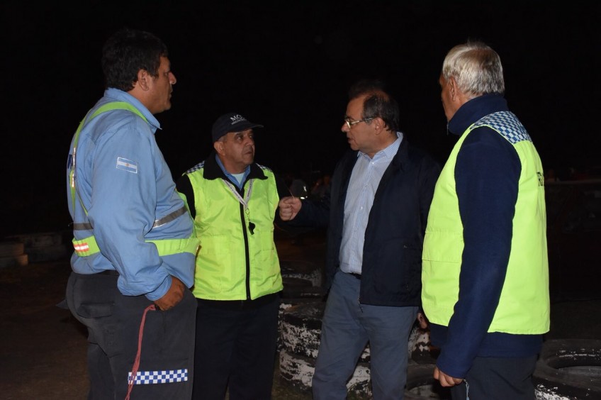 Junto al Secretario de Gobierno Hugo Calvano, el Intendente dialogó con el cuerpo de transito ubicado en distintos puntos estratégicos desde el Águila hasta el cosmódromo, luego ingresando al mismo se dirigió a los galpones para charlar con los comparseros y supervisar el estacionamiento que se realiza en el autódromo de la Ciudad.