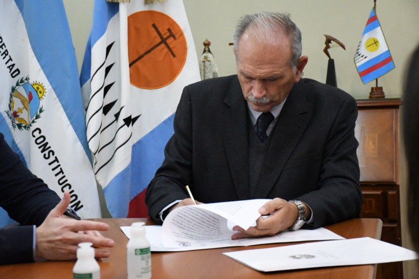 El viceintendente, Emilio Lanari, rubricó un convenio marco y acuerdo de trabajo y cooperación con el representante legal de la Escuela de Jardinería y Paisajismo, el Instituto Profesional N° 35, José Gauna. Estuvieron presentes, además, el secretario de Ambiente y Desarrollo Sustentable, Ignacio Maldonado Yonna y el secretario de Desarrollo Económico, Juan Esteban Maldonado Yonna.