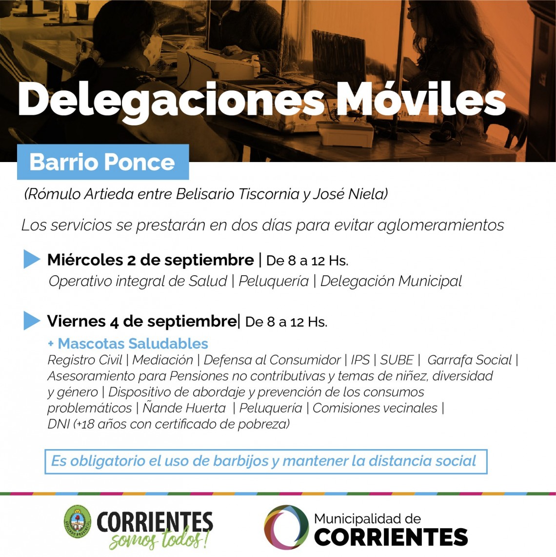 Como cada semana, la Municipalidad de Corrientes acerca múltiples servicios a diferentes comunidades en el marco de los operativos de Delegaciones Móviles. La próxima semana las intervenciones tendrán lugar en el barrio Ponce.