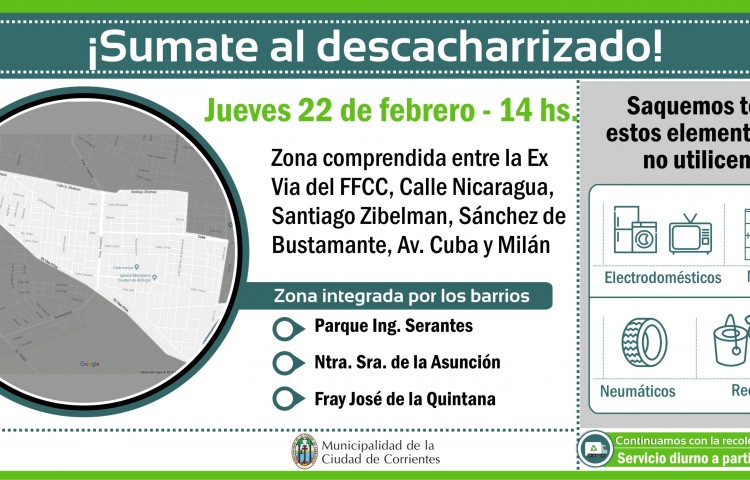 Este jueves continuarán los operativos de retiro de cacharros en los barrios Serantes, Nuestra Señora de la Asunción y Fray José de la Quintana.