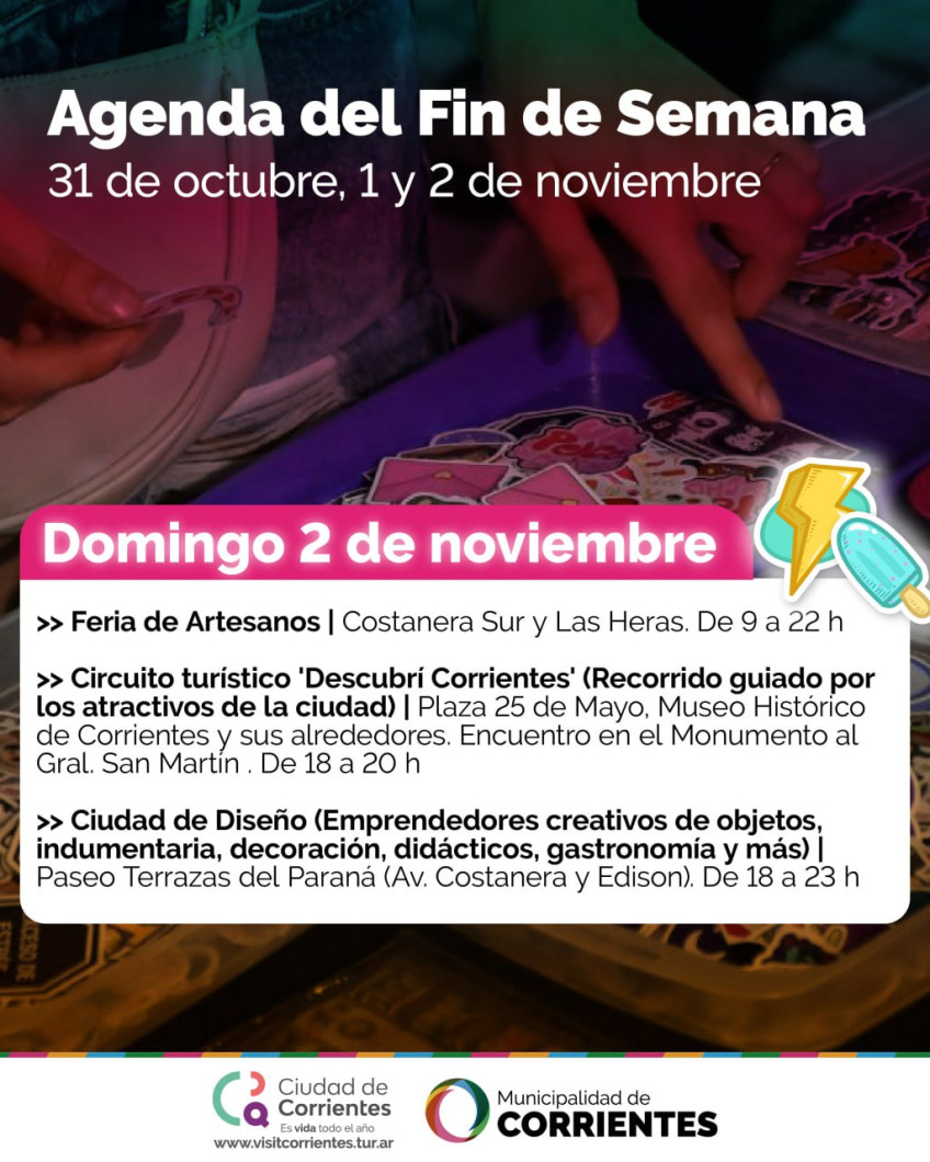 Una vez más, desde el viernes al domingo, vecinos y visitantes podrán disfrutar de actividades organizadas por la Municipalidad de Corrientes totalmente gratuitas y al aire libre. Entre ellas, ferias de artesanos y emprendedores, recorridos pedestres por los principales atractivos de la ciudad, sol y playa.