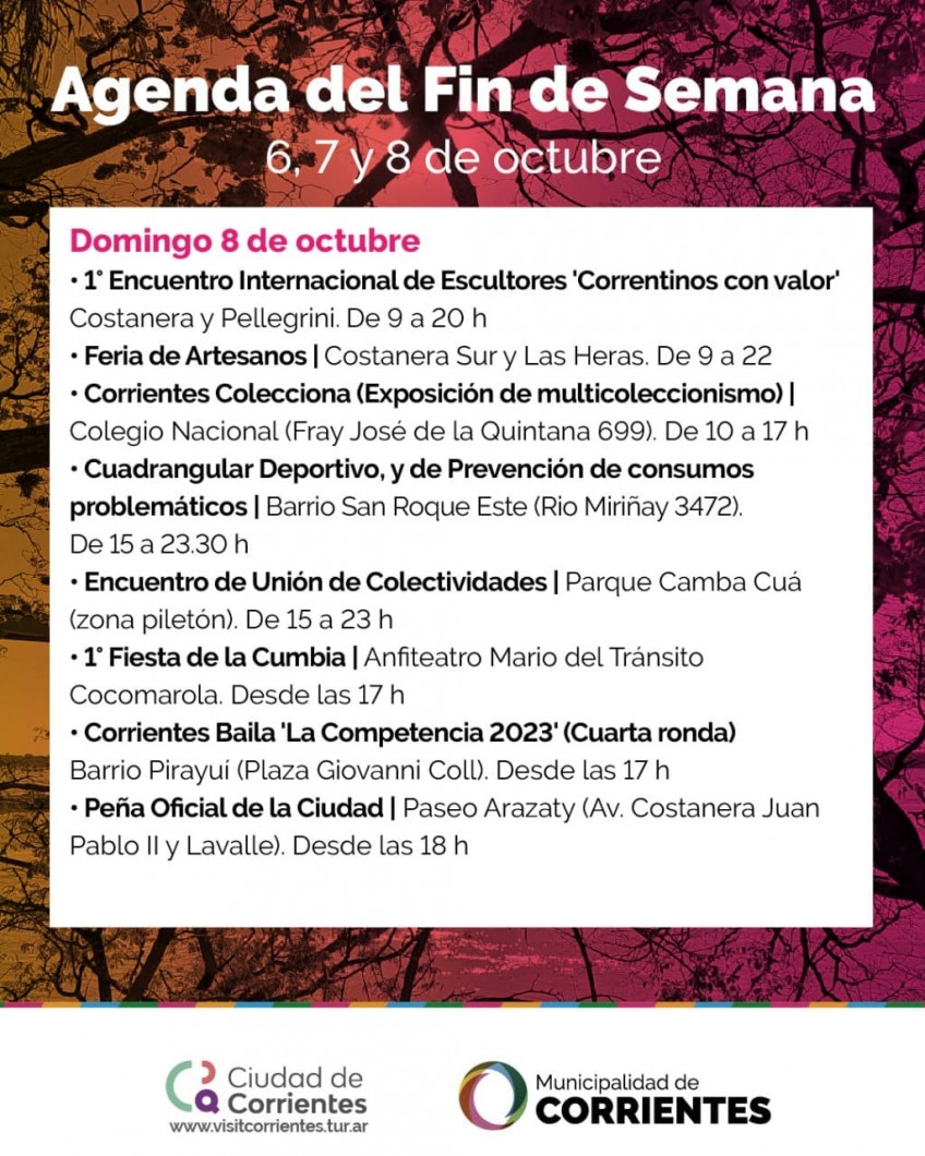 Como cada fin de semana, los vecinos y familias podrán elegir entre diversas alternativas gratuitas y al aire libre en distintos espacios de la ciudad, organizadas por la Municipalidad de Corrientes.