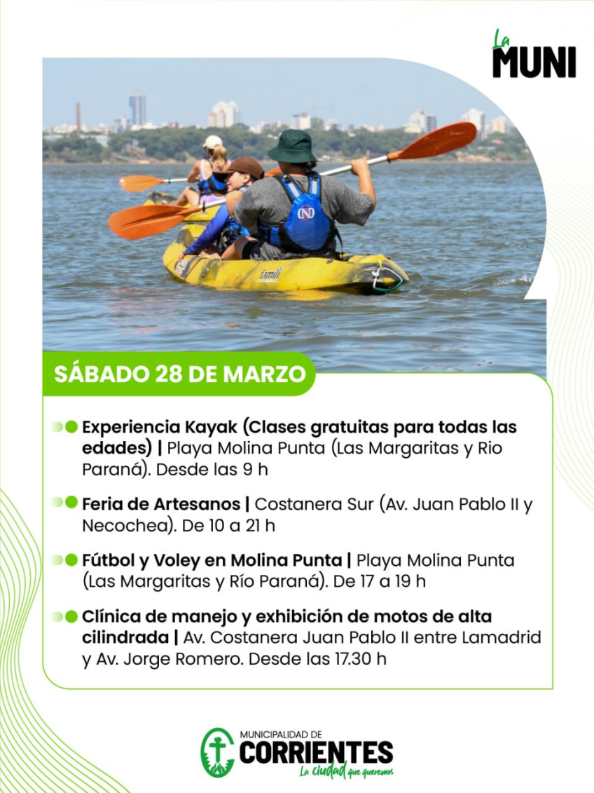 La Municipalidad de Corrientes presenta una nutrida agenda de propuestas recreativas, deportivas y culturales para este fin de semana, que se desarrollarán de viernes a domingo en distintos espacios públicos de la ciudad, con acceso libre y gratuito.