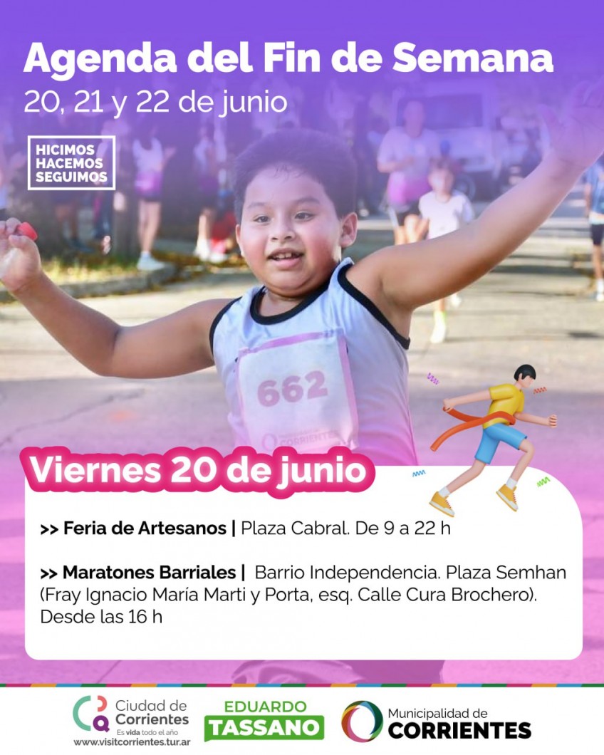 Se viene un fin de semana extra largo y, pese al frío, la Municipalidad de Corrientes organizó una variada agenda de actividades que se desarrollará desde el viernes al domingo. En diferentes espacios al aire libre se podrá disfrutar de la peña chamamecera, ferias de artesanos y emprendedores locales, maratón en el barrio Independencia, recorridos pedestres, feria K-Animé, entre otras propuestas para vecinos y visitantes.