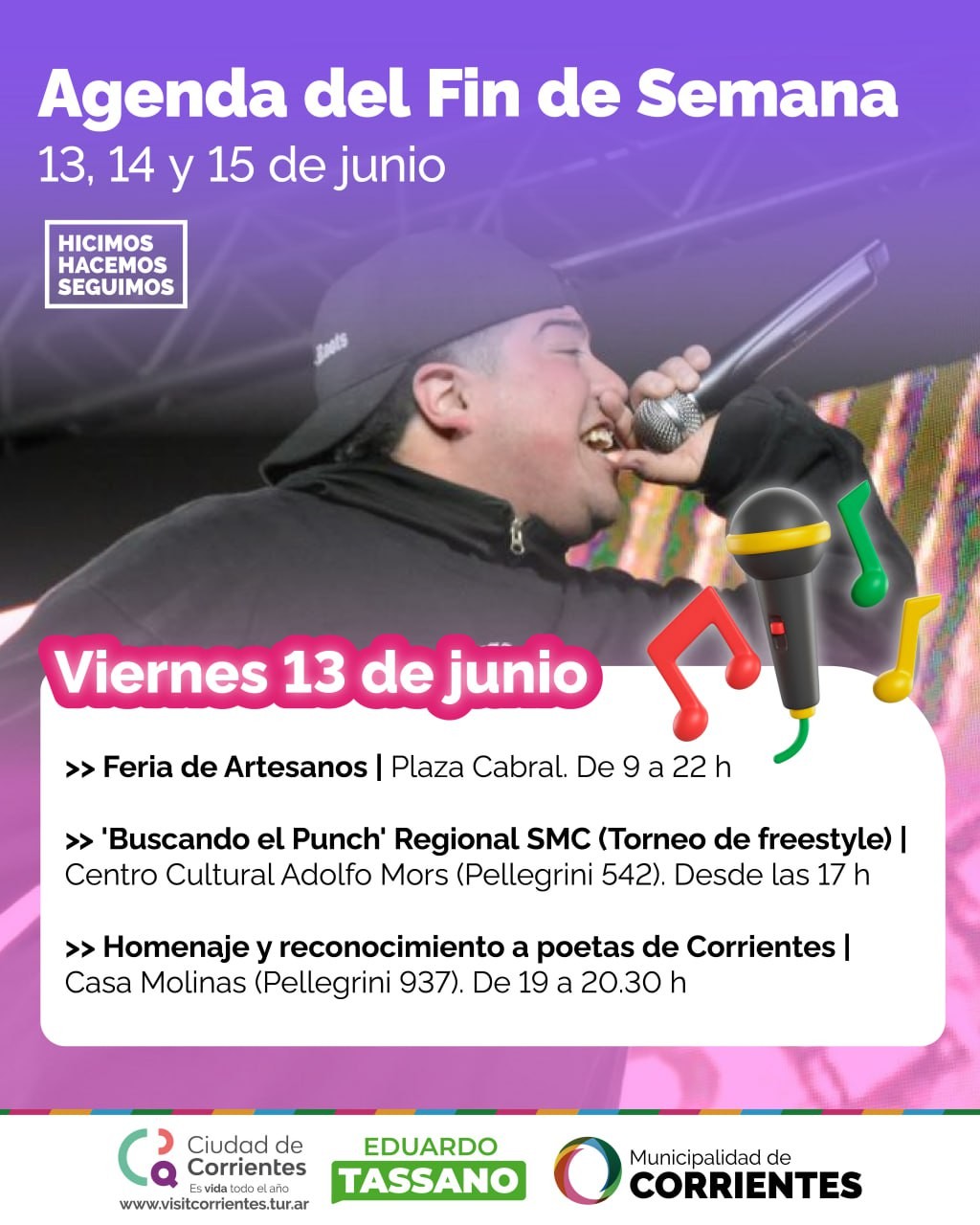Se viene un fin de semana largo y especial, por ello, desde la Municipalidad de Corrientes se organizó una variada agenda de actividades que se desarrollará desde el viernes al domingo. En diferentes espacios al aire libre se podrá disfrutar de recorridos guiados, ferias, maratones, encuentros literarios, homenajes a poetas, competencias de freestyle y la clásica peña chamamecera.
