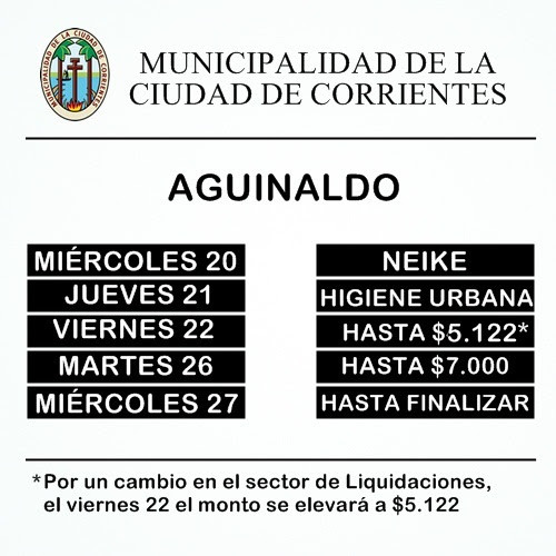 La Municipalidad de Corrientes pagará aguinaldo desde el miércoles 20 de diciembre