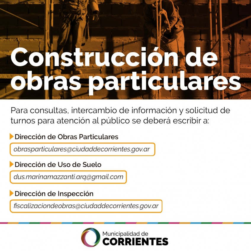 Dirección de Obras Particulares (obrasparticulares@ciudaddecorrientes.gov.ar),