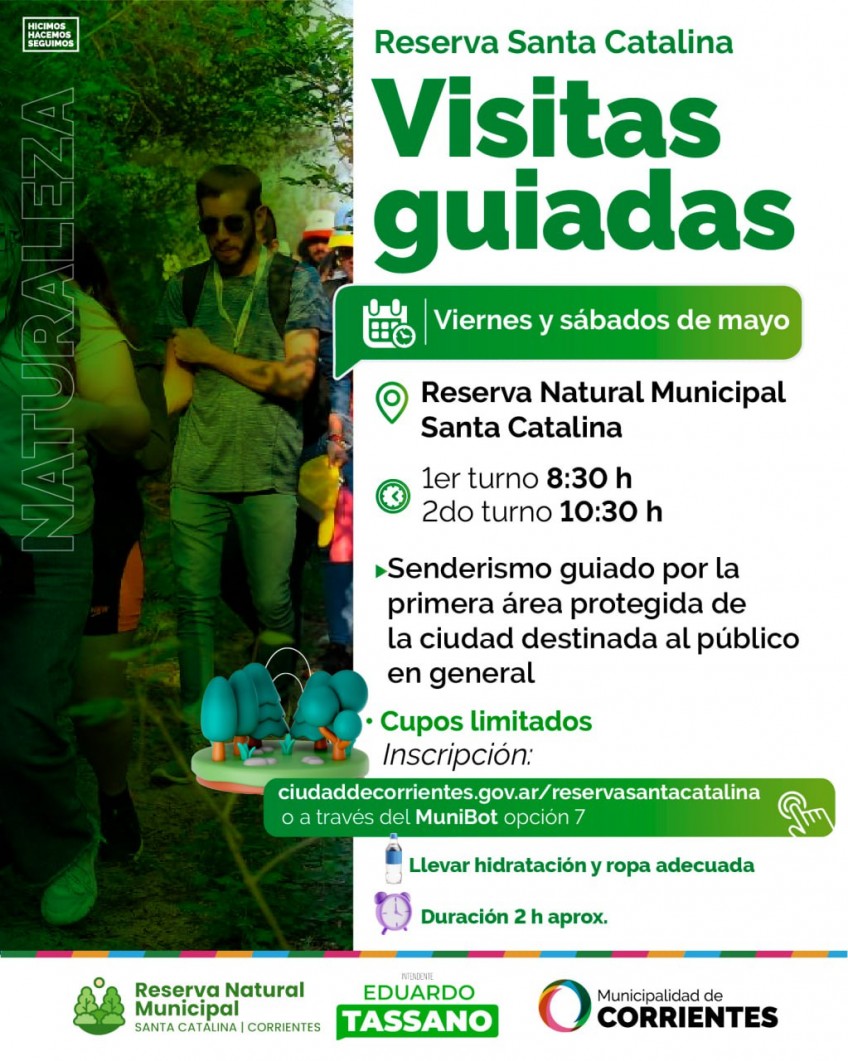 Calvano remarcó que si bien los recorridos guiados comenzaron en abril, “durante mayo hemos decidido ampliar los cupos, hasta 50 personas, para que más vecinos puedan conocer esta reserva y a partir de ella apropiarse y quererla como parte de este gran pulmón verde de la ciudad y que forma parte de la política ambiental que impulsó la gestión del intendente Eduardo Tassano”.
