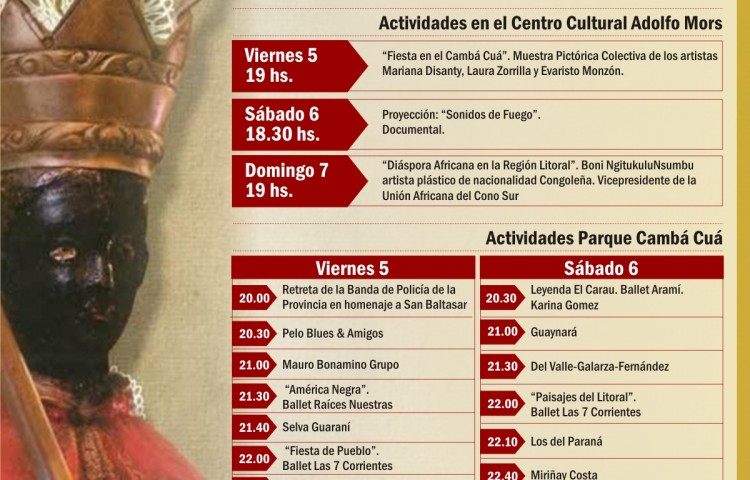 Como cada año, la fiesta de San Baltasar se llevará adelante en el parque Cambá Cuá, sobre la intersección de las calles 9 de Julio casi esquina San Luis, donde se montará el escenario principal.
