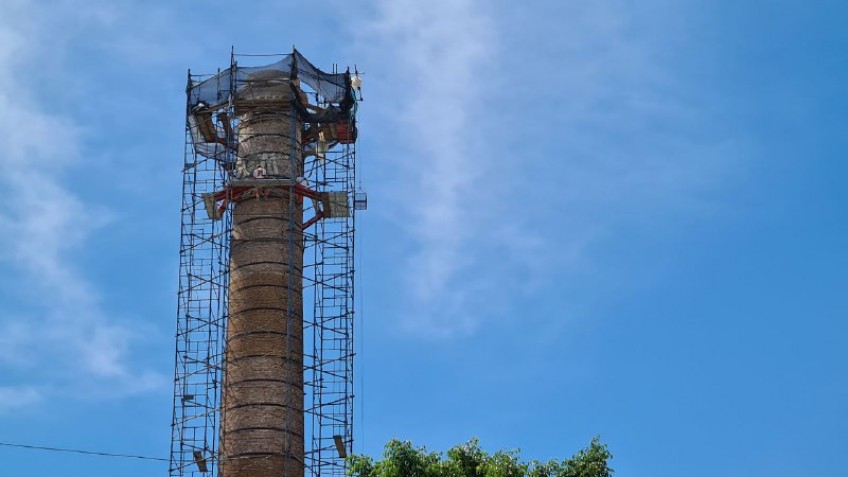 Durante la recorrida por la zona, los especialistas a cargo de estas tareas contaron que se colocaron sunchos de acero tanto en la cara exterior e interior de la chimenea para mejorar y fortalecer su estructura; además se utilizaron ladrillos de la época para la reconstrucción, incluso se trajeron otros del interior provincial de la demolición de una construcción antigua, en lo que se trata de un delicado trabajo artesanal de los obreros especializados.