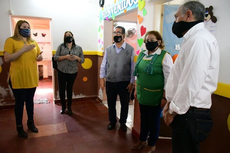 El viceintendente recorrió las obras de refacción que se llevan adelante en los diferentes Centros de Desarrollo Infantil (CDI) municipales. En el marco de esta visita, estuvo presente en el CDI VII del barrio Santa Marta, oportunidad en que dialogó con tutores que se acercaron hasta la sede para entregar los cuadernillos realizados por los docentes para que los padres acompañen a sus hijos en su desarrollo durante este periodo de cuarentena que impide reabrir las salas escolares.