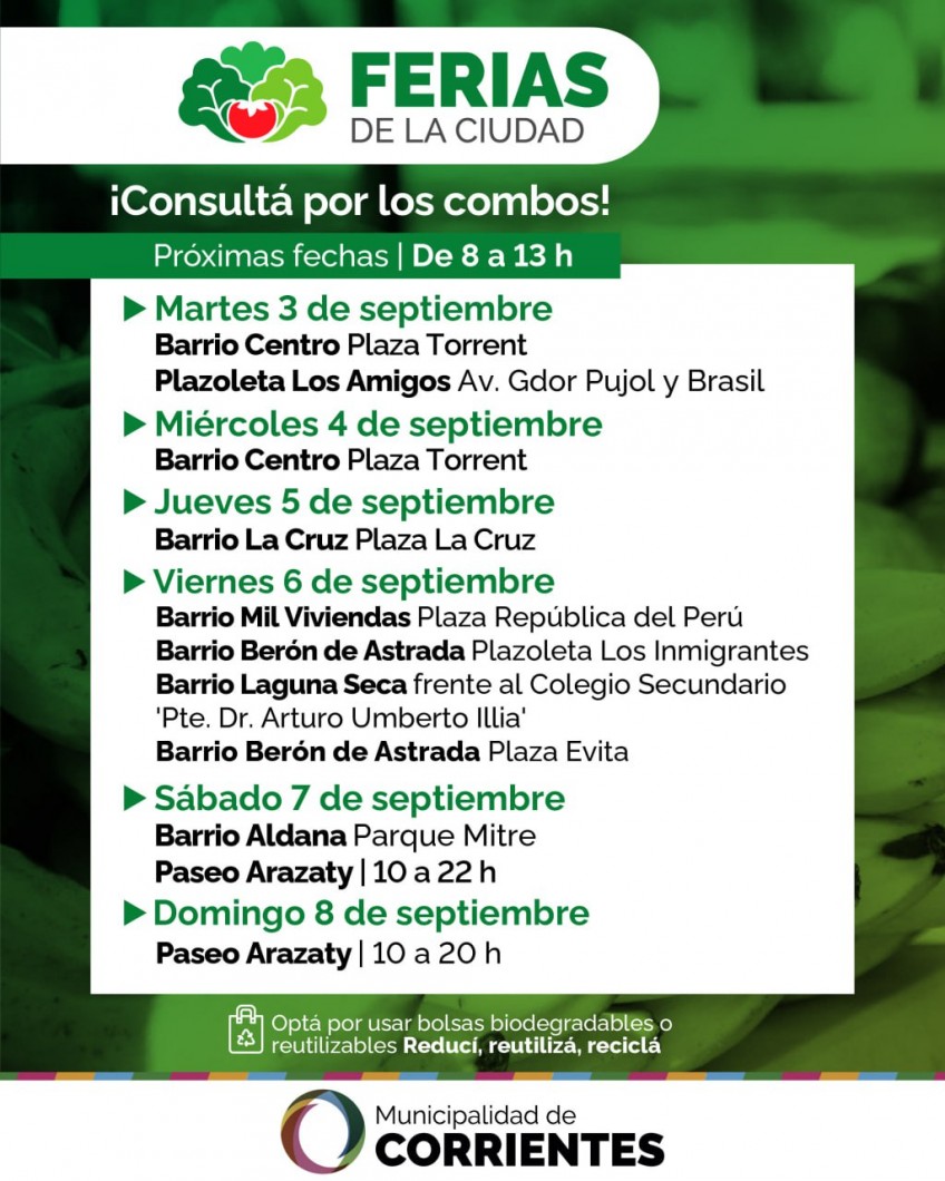 La Municipalidad de Corrientes continúa acercando productos de calidad, con interesantes ofertas y combos, a diferentes barrios, a través de las Ferias de la Ciudad, propuesta coordinada por la Secretaría de Desarrollo Económico municipal, a través de la Subsecretaría de Economía Social.