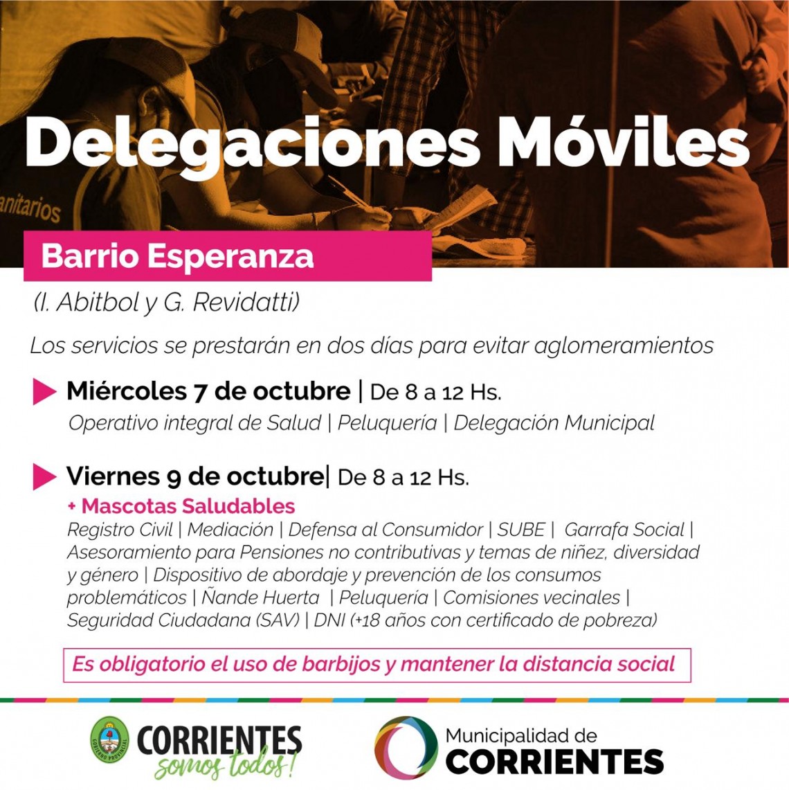 La Municipalidad de Corrientes continúa con los operativos de Delegaciones Móviles. Las intervenciones tendrán lugar el miércoles y el viernes en el barrio Esperanza, con diversas prestaciones gratuitas.