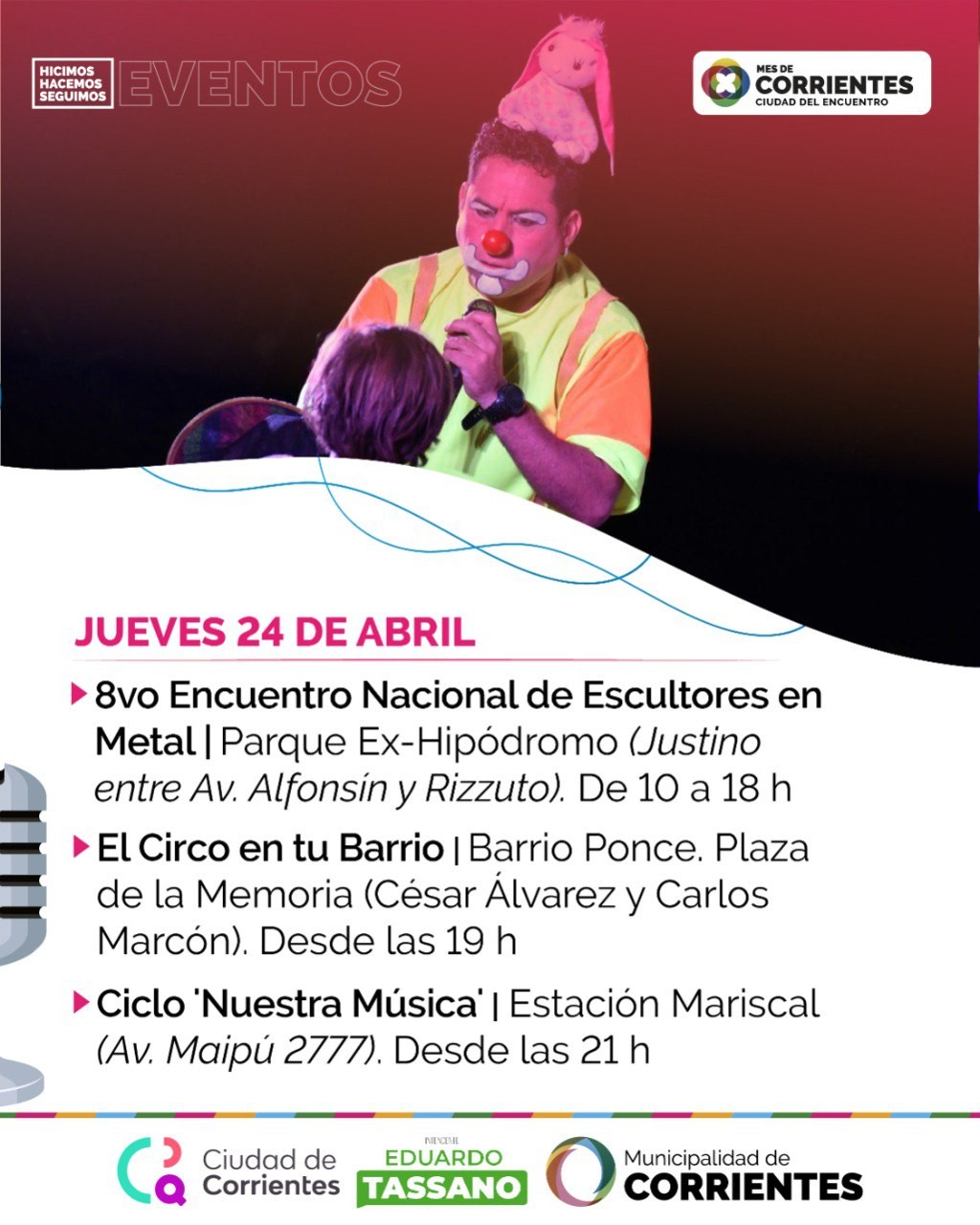 El jueves, la Municipalidad preparó una nueva presentación de El Circo en tu Barrio en la plaza de la Memoria, del barrio Ponce, desde las 19. Y por la noche, a partir de las 21, se realizará el ciclo 'Nuestra Música' en la Estación Mariscal (avenida Maipú 2777).