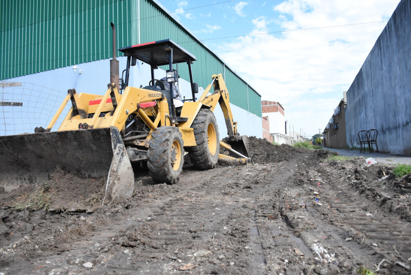 Una retroexcavadora y un camión volcador comenzaron con las primeras labores, que consistieron en la erradicación de dos mini basurales ubicados en las respectivas esquinas, así como el retiro de suelo del tramo de unos cien metros lineales.