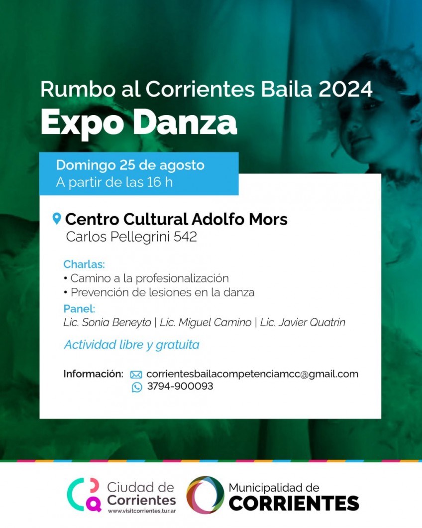 Los interesados en participar, tanto de la Expo Danza como del certamen 2024 podrán solicitar informes al correo electrónico: corrientesbailacompetencia.mcc.gmail.com ó bien al teléfono 03794-900093, aclarándose que los cupos son limitados.