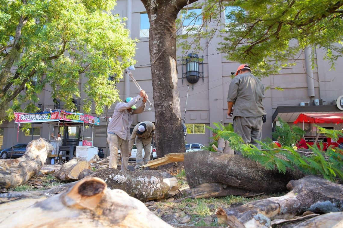 Las tareas forman parte del plan municipal de mantenimiento del arbolado urbano y prevención de riesgos, con el objetivo de preservar los espacios públicos y garantizar la seguridad de quienes los utilizan diariamente.