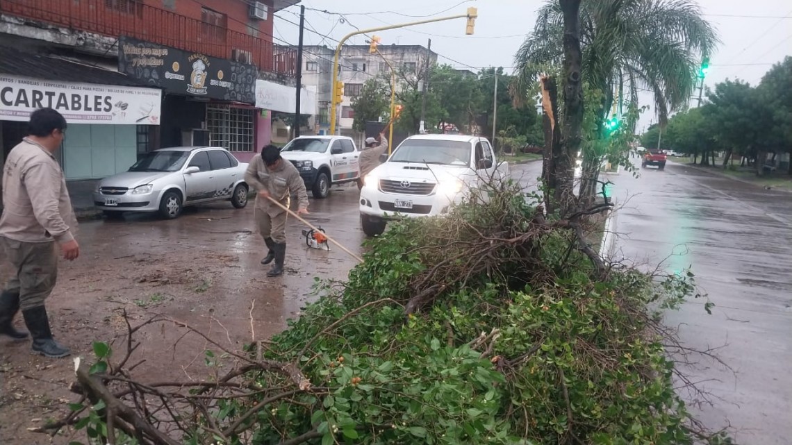 La tormenta con lluvia afectó más a la zona Sur de la ciudad, donde por la acción del viento, cayó un árbol y dos postes de servicios. Los trabajadores municipales trabajaron desde el amanecer para desobstruir sumideros tapados por basura y plásticos.