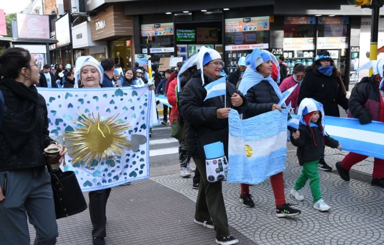 Con banderas y vestimenta celeste y blanca, los CDI desfilaron por la peatonal Junín