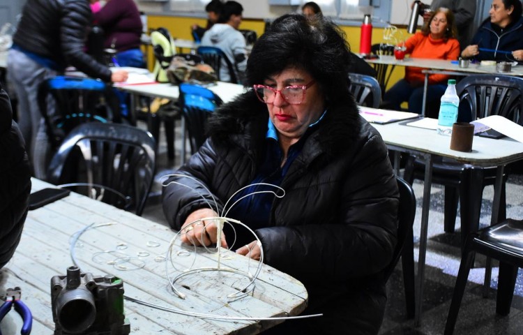 Un nutrido grupo de comparseros participó de la capacitación en la Sociedad Italiana, sobre nuevas formas de trabajar con material reciclado sin soldaduras.