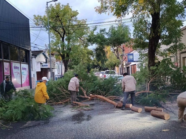 Amplio operativo de la Municipalidad ante los fuertes vientos y lluvias en la ciudad