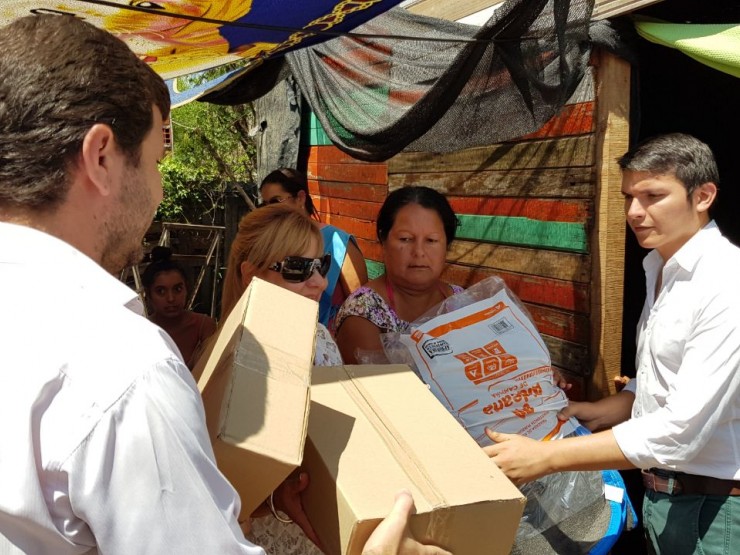 En un operativo de relevamiento y asistencia a familias que se vieron afectadas por la creciente del Paraná, se entregaron alimentos y elementos de primera necesidad.