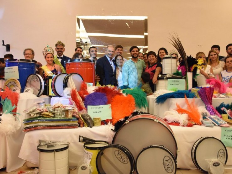 El Ministerio de Desarrollo Social entregó materiales y herramientas a comparsas barriales para la confección de sus trajes e instrumentos musicales.