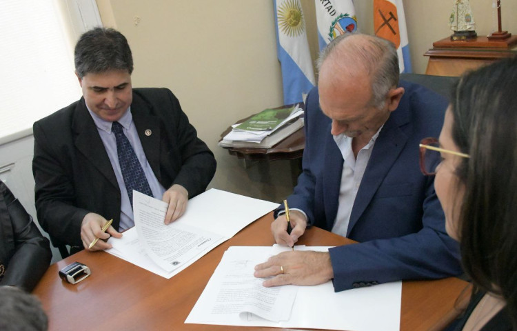 El viceintendente, Emilio Lanari, firmó el convenio con el presidente del organismo, Pedro Cotelo.